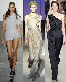 And this time - shoulders. Or, more precise - one shoulder. Next trend, which reminds me of 90's, but comparing to the bare midriff it's less provocative and more likely to stay in fashion for longer. We've already seen many of those for FW 08/09, but in the summer there's just more occasions to show off ones bare shoulder.